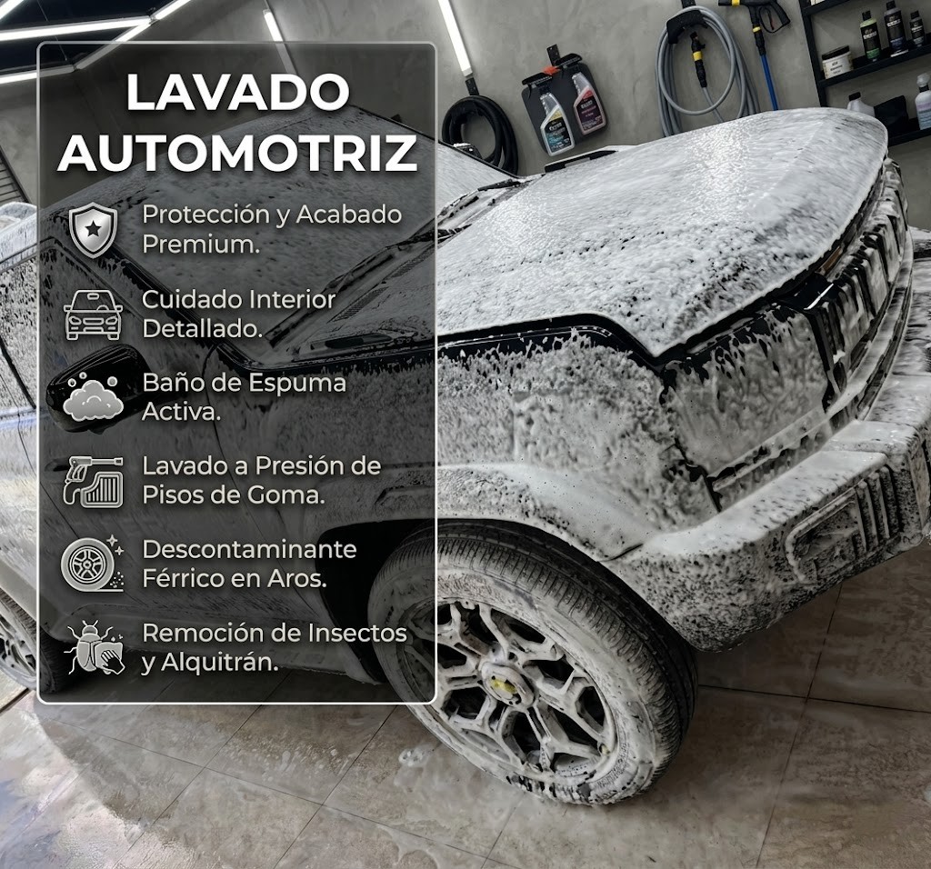 • Exterior shampoo neutro. • Silicona exterior. • Limpieza lunas y plásticos. • Ambientador.